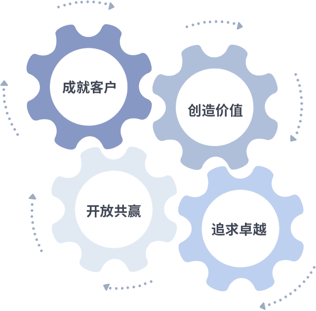 成就客户是一切决策的出发点,,,,创造价值是衡量所有工作的标准,,,追求卓越是bwin必赢做事做人的态度,,,,开放共赢是bwin必赢的格局也是最终的结果。。。。价值观的齿轮环环相扣,,推动着组织里的每个人不断向前。。